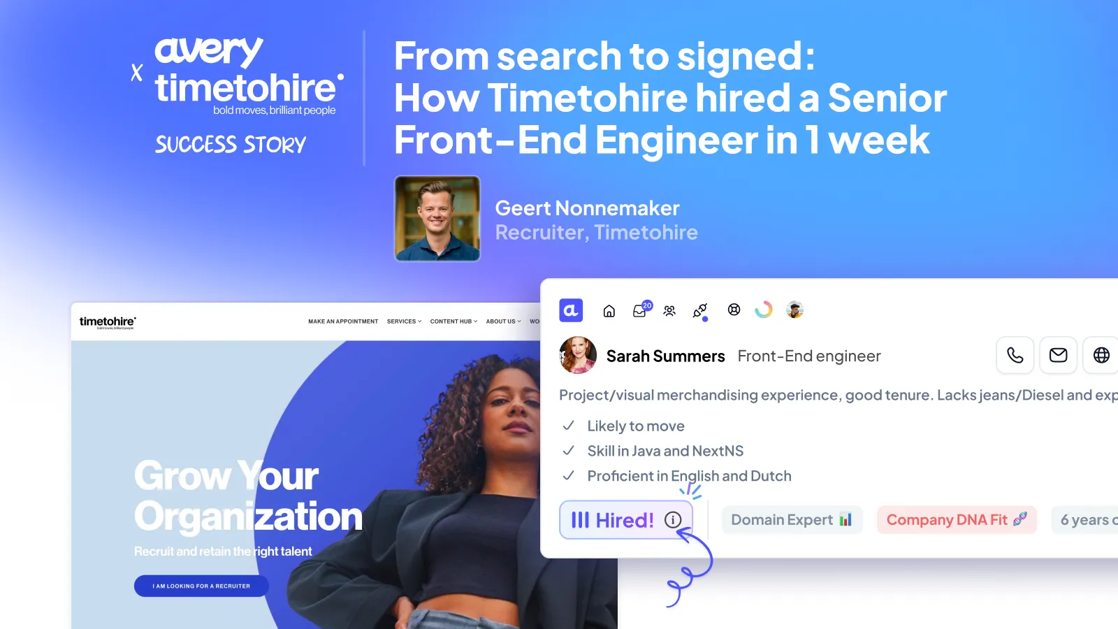 From search to signed: How Timetohire hired a Senior Front-End Engineer with Avery, in just 1 week